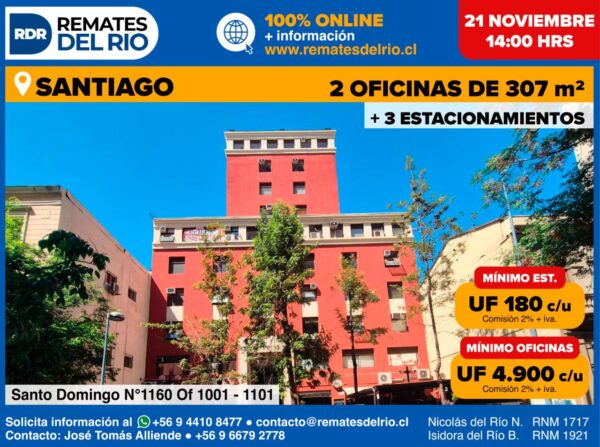 Se remata un conjunto de unidades inmobiliarias ubicadas en el mismo edificio con acceso por Calle Santo Domingo N°1160, en la comuna de Santiago.
