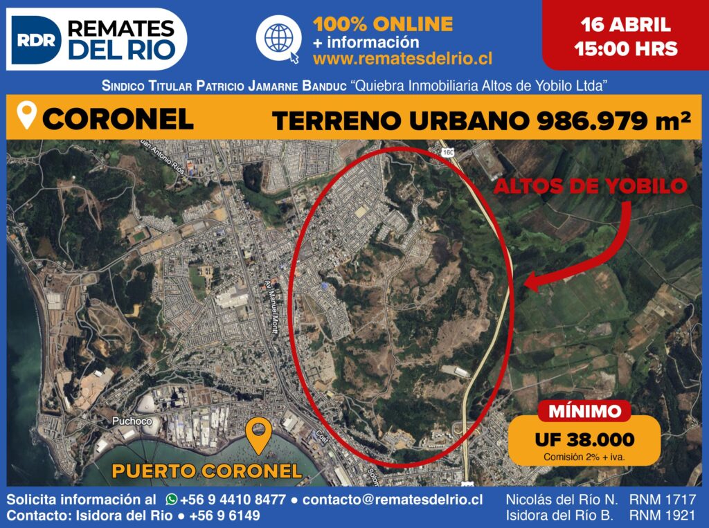REMATE TERRENO URBANO CORONELUF 38.000Gran terreno urbano en Coronel ideal para mega proyecto de inversión